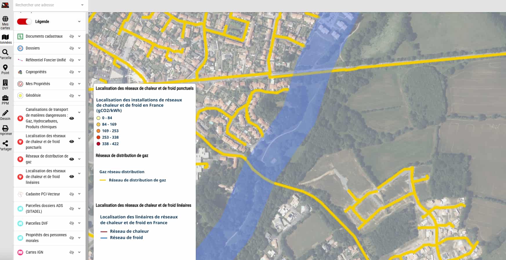 Nous ajoutons également plusieurs données issues de l’IGN liées aux réseaux de distribution de gaz, de chaleur et de froid. Ces informations vous aident à identifier les solutions énergétiques existantes et à anticiper les contraintes ou opportunités d’un secteur.